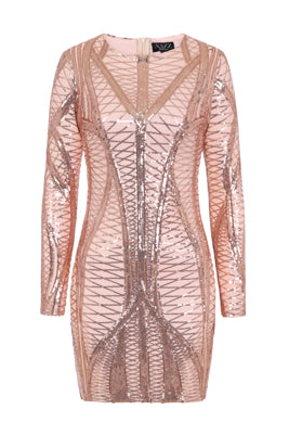 HILTON LUXE EMBELLISHED CAGE ILLUSION SEQUIN DRESS